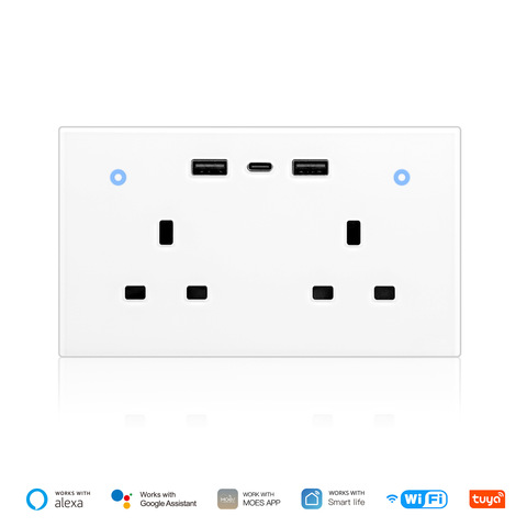 กราฟฟิตีไวไฟสำหรับบ้านอัจฉริยะ UK มาตรฐาน UK + 2USB + พิมพ์ C เต้ารับติดผนัง2ตำแหน่งมาตรฐาน UK